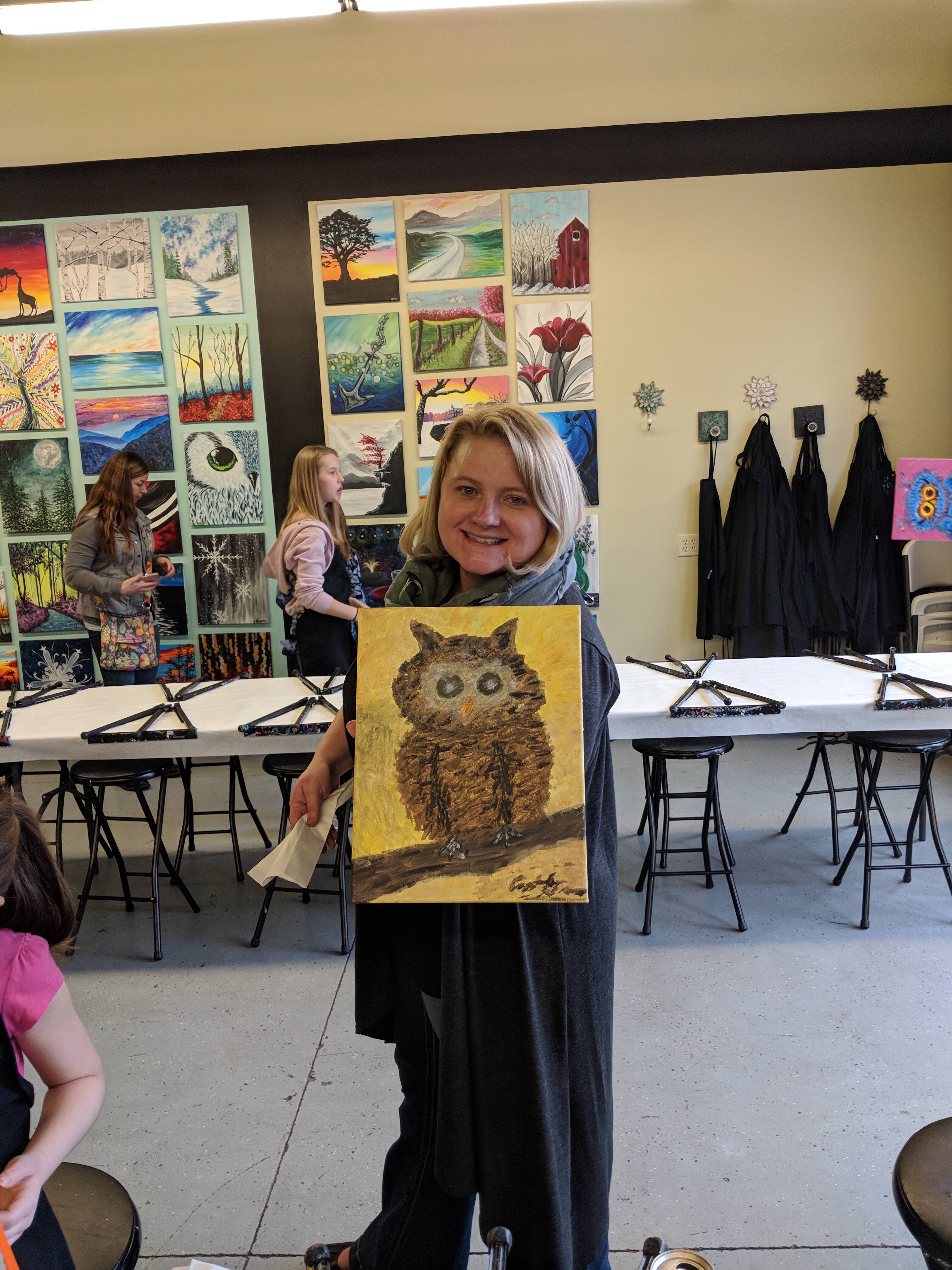 The afternoon consisted of a wonderful lunch, painting with friends, which was escorted to and from in a limousine. After painting, my husband picked us up in the family van, opening the front door for me his bride, and the side door for my friends! I was proud of the man I married and thankful he chose me to journey this life with him. I was proud to serve the most loving God, the giver of all good things! I was proud to spend the afternoon with a few of my closest friends! My heart was well-beyond happy!