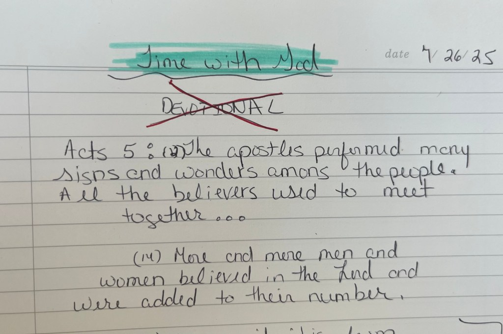I crossed out “Devotional” and above wrote “Time With God.” This felt inviting and refreshing. I mean who wouldn’t want to spend time with God?