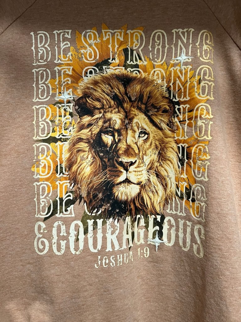 Picture below of a shirt I purchased a few days ago and I feel like it is a gift to remind me during this difficult time to not be afraid and to always live courageously for the Lord.